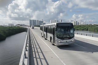 Dos rutas de camiones urbanos circularán sobre el Puente Nichupté; son 38 unidades híbridas para 70 pasajeros c/u