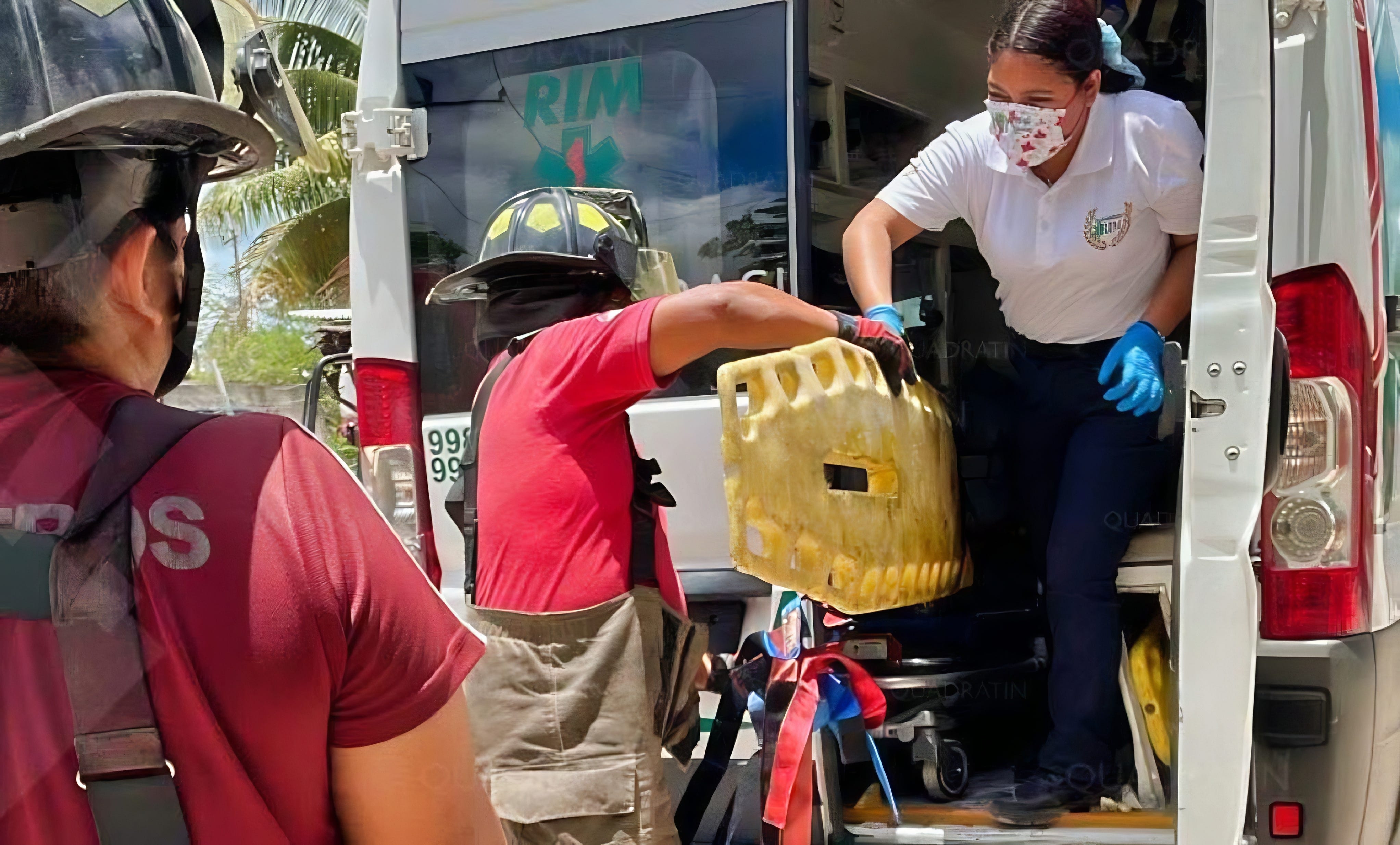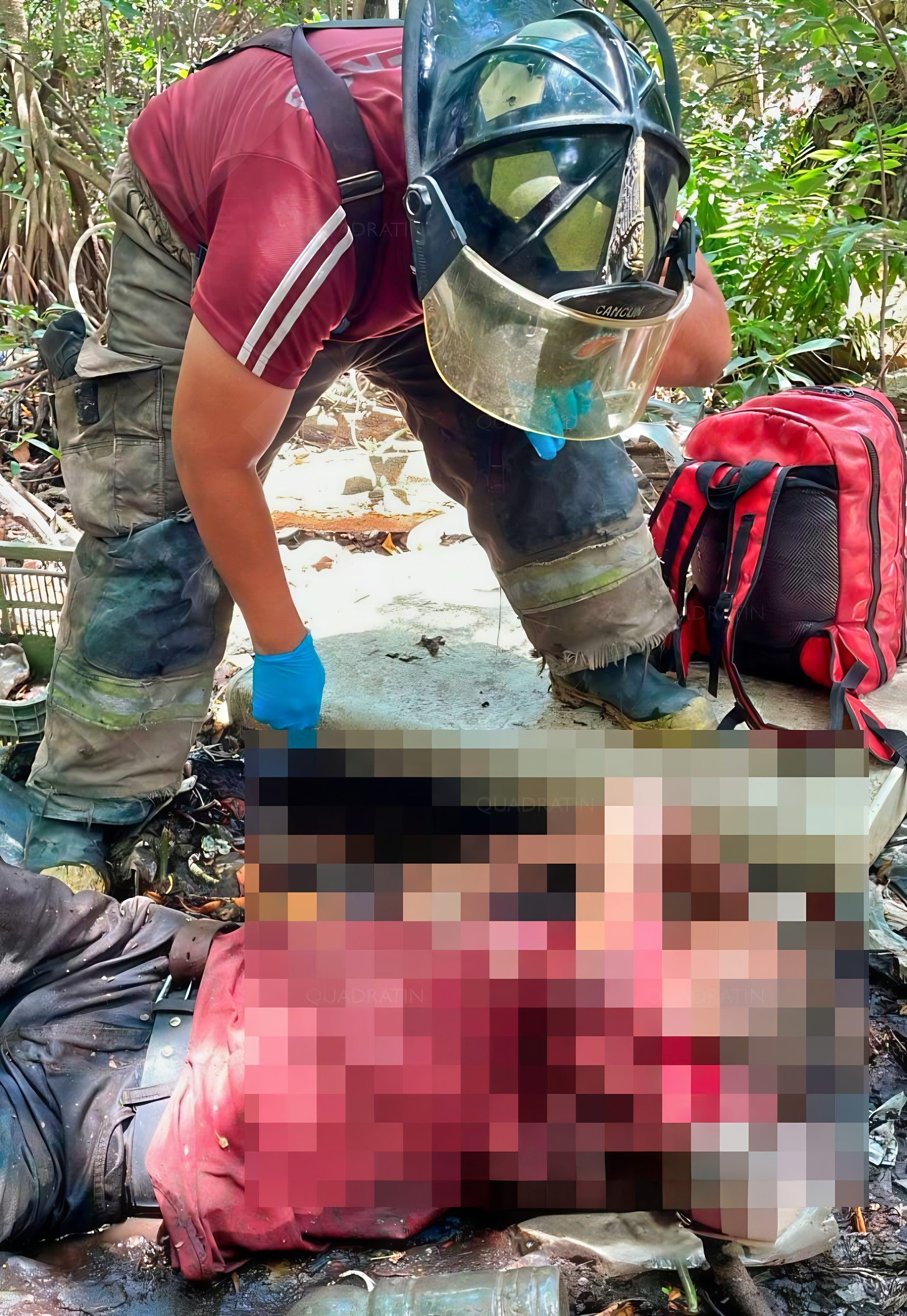 Un equipo del Cuerpo de Bomberos rescató a un hombre de la tercera edad atrapado en un cenote fangoso en la región 200, cerca de la colonia La Jungla
