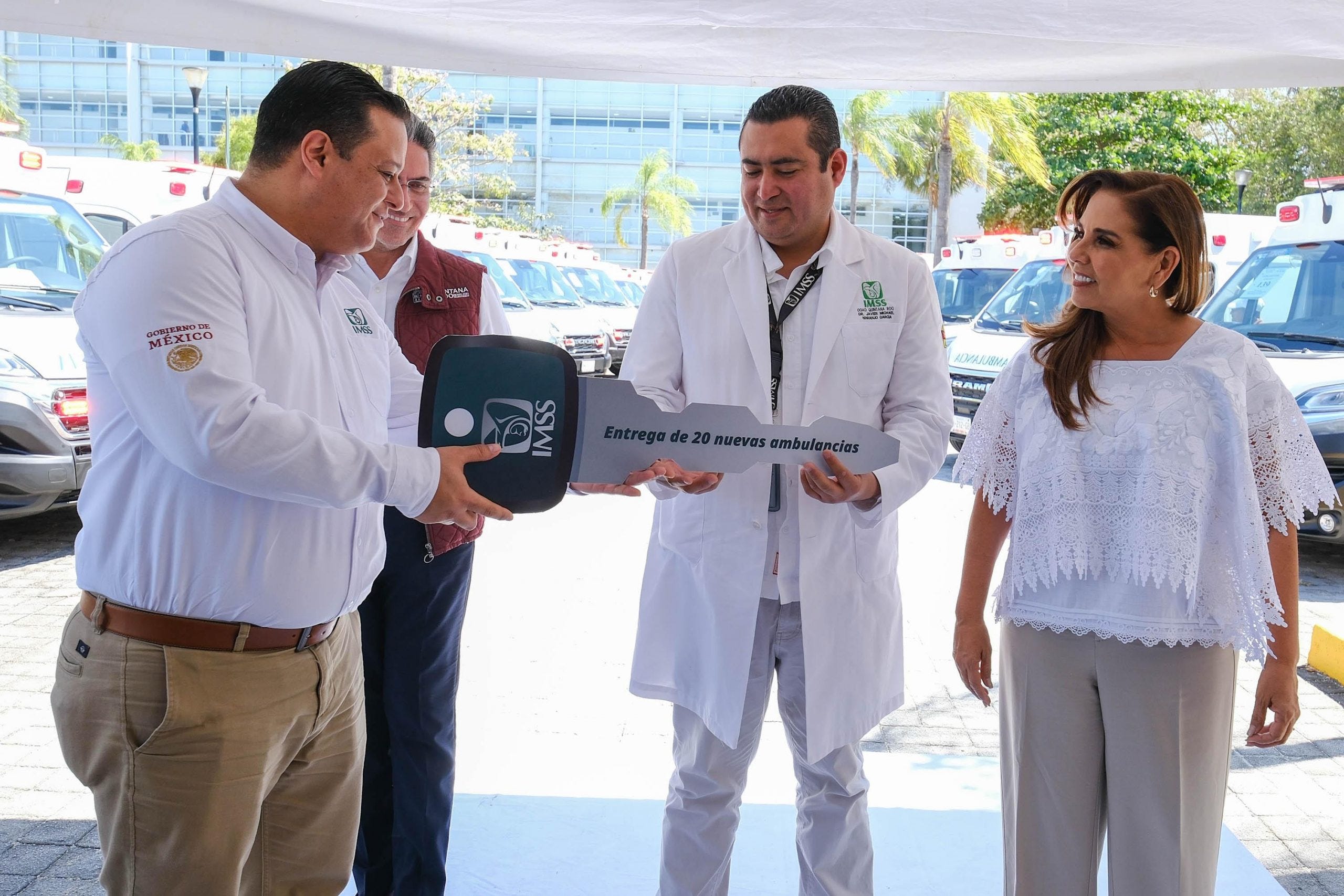 Acompaña Mara Lezama, la entrega de 20 ambulancias para el IMSS y 112 mdp para infraestructura hospitalaria en Chetumal y Benito Juárez
