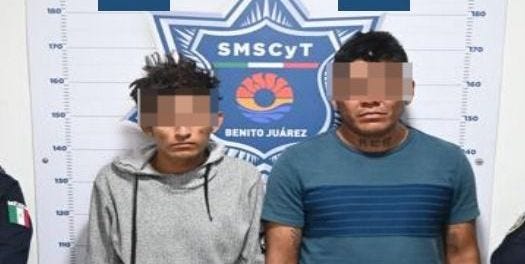 Cancún.- Agentes de la Secretaría Municipal de Seguridad Ciudadana y Tránsito de Benito Juárez detuvieron a José Mauricio “N”, de 24 años, y Hugo Alberto “N”, de 28, por su presunta participación en delitos contra la salud.