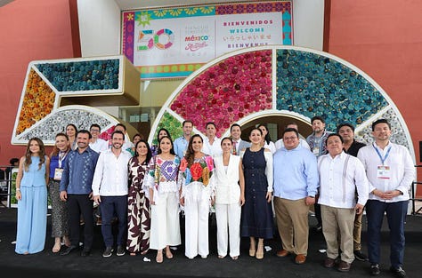 “En esta edición histórica, el número 50, no solo celebramos el pasado, proyectamos el futuro con cifras contundentes. Por primera vez, nueve países participan en el pabellón propio, incluyendo Colombia, nuestro país invitado. Estamos hablando de 8 mil visitantes y participantes en este tianguis, 58 mil 998 citas de negocios, 40% más que la edición anterior, y más de mil 300 empresas expositoras. Y todo esto en un momento clave, la antesala del mundial 2026, que nos coloca como una vitrina global ante millones de miradas internacionales”, resaltó la secretaria de turismo.