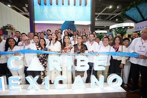 Antes de finalizar la jornada, Ana Paty Peralta encabezó la apertura oficial del espacio de promoción de Cancún dentro de ese stand y del Tianguis, lo que marca el inicio de las actividades comerciales, reuniones de negocios y acciones de posicionamiento del destino, líder en México y el mundo.