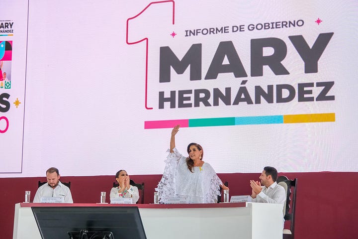 Felipe Carrillo Puerto.- La gobernadora Mara Lezama Espinosa recibió, en sesión solemne de Cabildo, el libro que contiene el Primer Informe de Gobierno Municipal de la presidenta Mary Hernández, en el corazón de la zona Maya, administración 2024-2027.