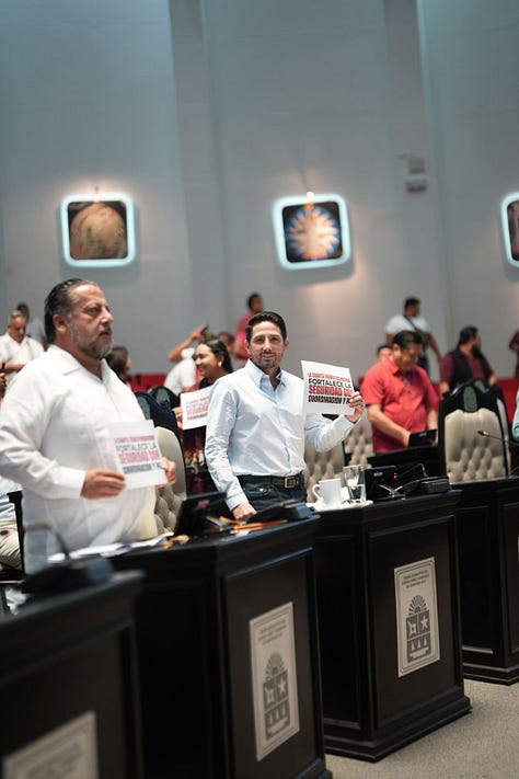 Otra de las reformas aprobadas permitirá fortalecer las Mesas de Paz y el Centro de Mando e Inteligencia, a fin de garantizar la coordinación diaria entre instituciones y el uso moderno de tecnología para mejorar la seguridad de las familias quintanarroenses.