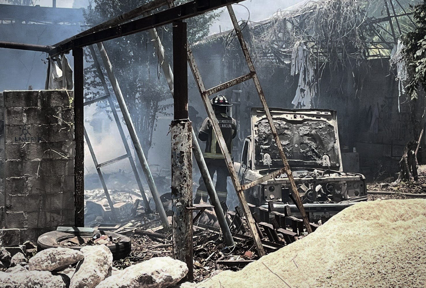 Cancún.— La tarde de este martes, un taller y bodega de fibra de vidrio ubicado en la súper manzana 94, quedó reducido a cenizas tras un incendio originado por un intento fallido de eliminar un panal de abejas con fuego. La imprudente acción desató un siniestro que consumió por completo el predio y un vehículo en su interior.