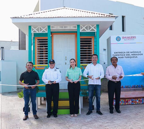 Isla Mujeres.– Con el propósito de brindar una mejor atención y asistencia inmediata al turismo que nos visita, la Presidenta Municipal, Atenea Gómez Ricalde, entregó el nuevo Módulo de Atención Turística y Seguridad en el Mirador Mar Turquesa, ubicado frente al Garrafón.
