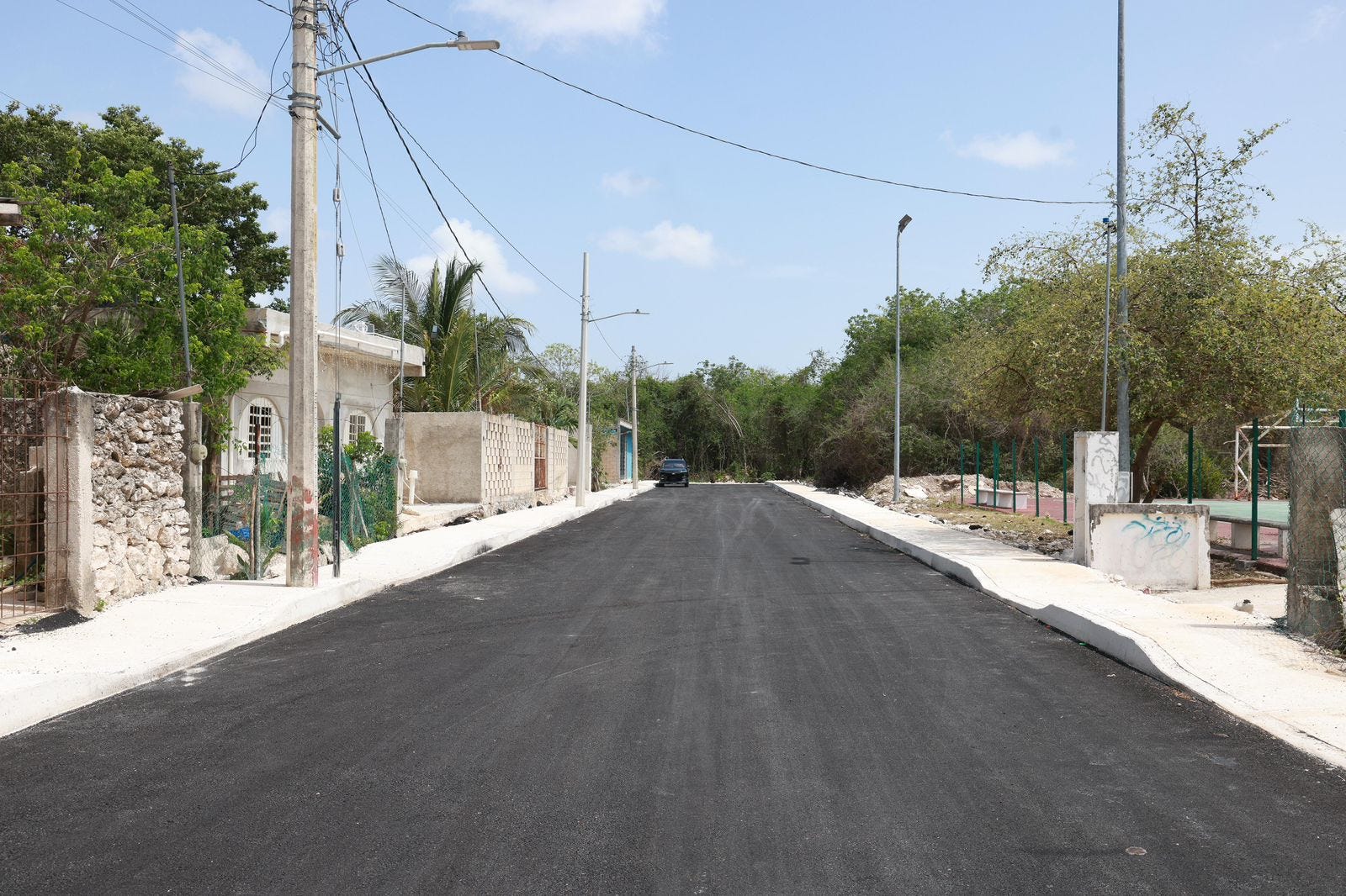 La alcaldesa isleña también constató los trabajos de señalética y pintura en guarniciones que forman parte del plan integral de mejoramiento urbano en beneficio de las familias de Ciudad Mujeres.