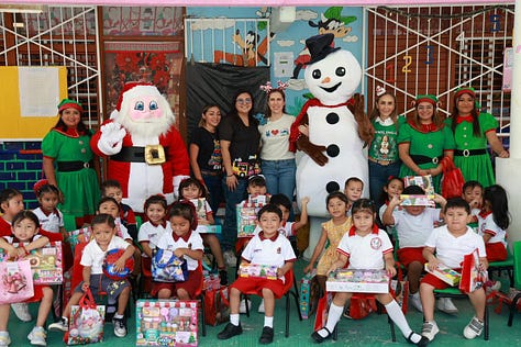 En cada plantel, Atenea Gómez convivió con las y los estudiantes, compartió mensajes de unión y esperanza, y les entregó juguetes y dulces para que disfrutaran de una celebración navideña llena de ilusión.