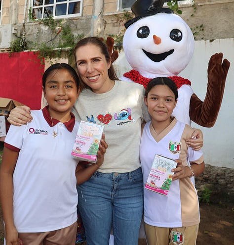Isla Mujeres.– Con el firme compromiso de llevar alegría, convivencia y momentos especiales a las niñas y niños de Isla Mujeres, la Presidenta Municipal , Atenea Gómez Ricalde, continúa con la entrega de juguetes y esta mañana visitó las escuelas de la Isla, en el marco del programa Navidad en tu Escuela.