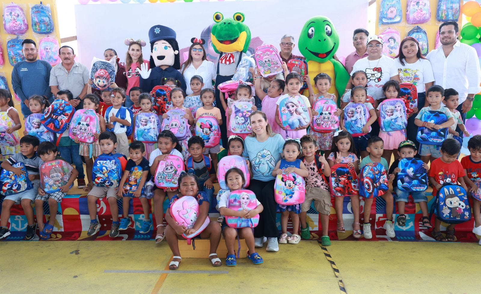 Atenea Gómez Ricalde entrega inicia la entrega de mochilas a niñas y niños de Isla Mujeres