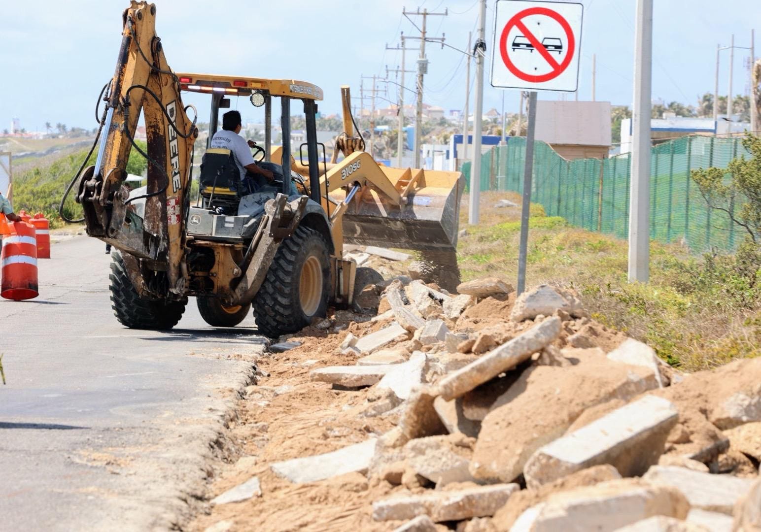 Isla Mujeres.- El Gobierno de Isla Mujeres, encabezado por la Presidenta Municipal, Atenea Gómez Ricalde, inició una nueva obra en la Avenida Perimetral del Mar Caribe, donde se construye una vialidad alterna frente al socavón que dejó a su paso el huracán “Helen”, con el propósito de brindar mayor seguridad a turistas y locales que transitan por la esta zona.