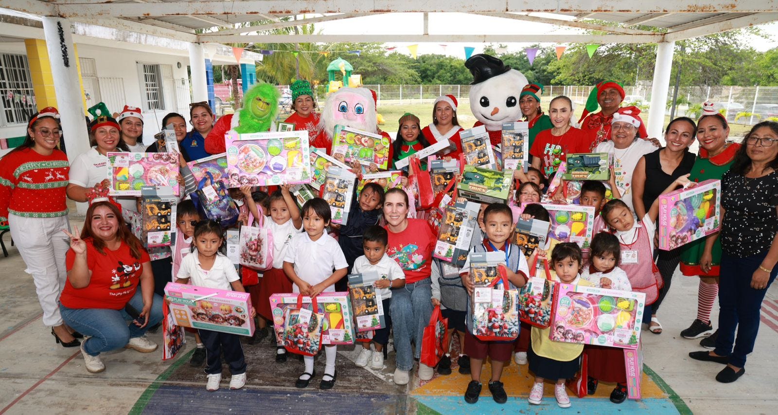 La Presidenta Municipal, reiteró que visitarán todas las escuelas del municipio, tanto en la Zona Continental como en la Isla, para que ninguna niña ni niño se quede sin recibir un juguete esta Navidad.