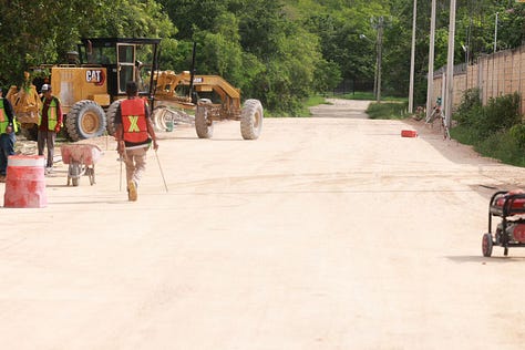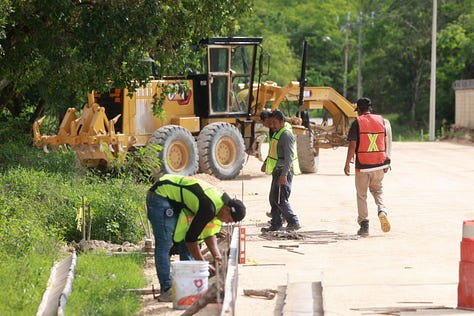 Atenea Gómez Ricalde supervisa avances de la obra de pavimentación en la calle de acceso al Bachilleres de Ciudad Mujeres