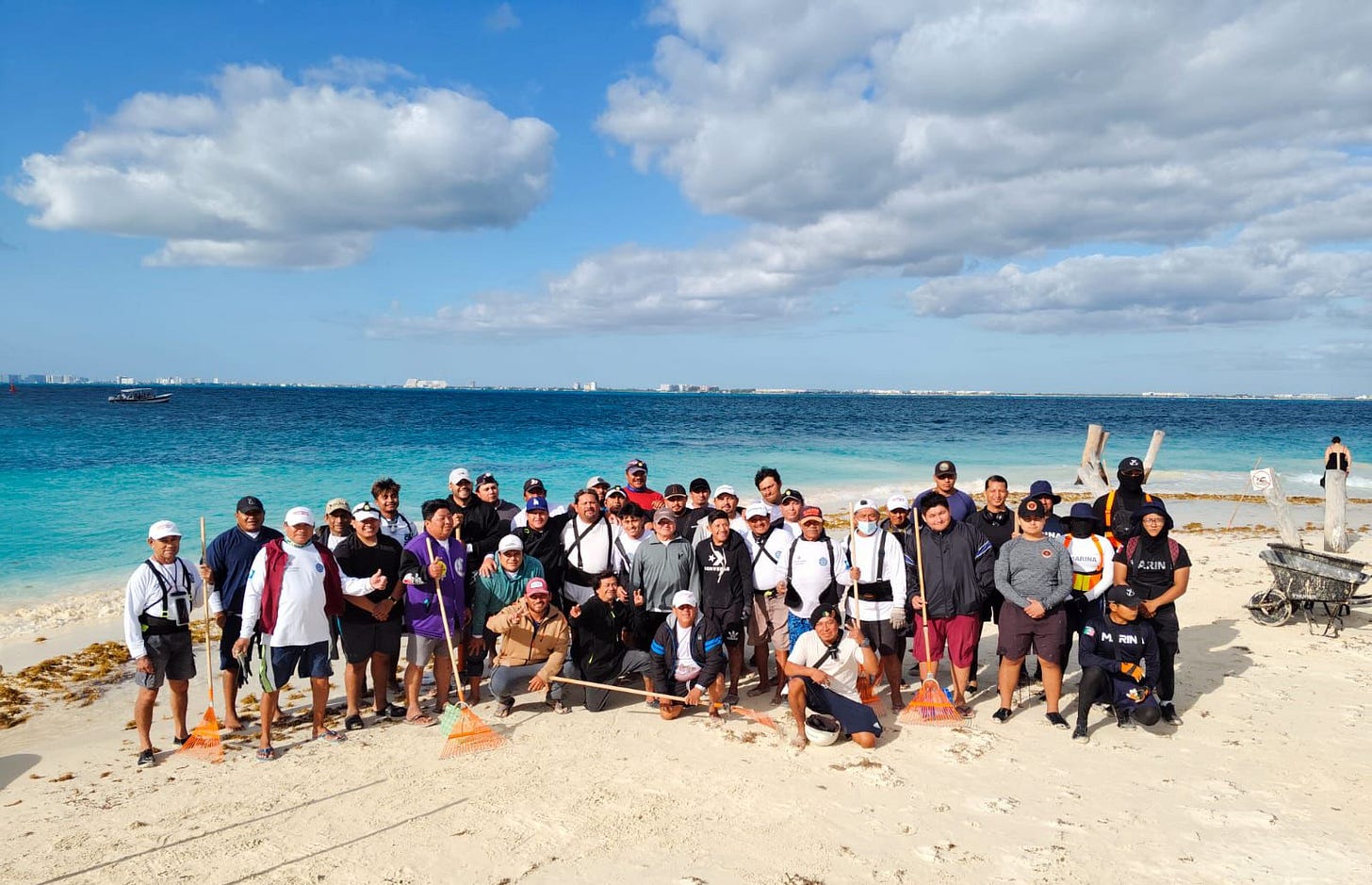 Atenea, destacó que en Isla Mujeres existe una estrategia clara y efectiva para la atención del sargazo, lo que permite actuar con rapidez para que las playas se mantengan limpias, seguras y listas para el disfrute de las familias isleñas y de quienes visitan este destino turístico de clase mundial.