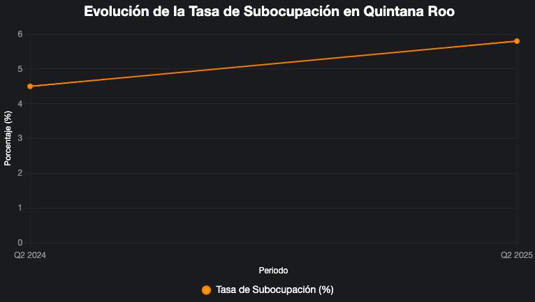 La subocupación, según el INEGI, se define como la condición de las personas ocupadas que tienen la necesidad y disponibilidad de trabajar más horas de las que su empleo actual les permite, lo que implica una subutilización de la fuerza laboral. En Quintana Roo, este indicador ha crecido en medio de un contexto de crecimiento económico impulsado por proyectos como el Tren Maya y el Aeropuerto Internacional de Tulum, pero que no necesariamente se traduce en empleos estables con jornadas completas.