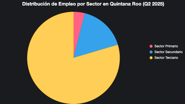 Terciario: 79.4% (784,000 personas), donde se concentra la mayoría de los subocupados debido a la naturaleza variable del turismo.