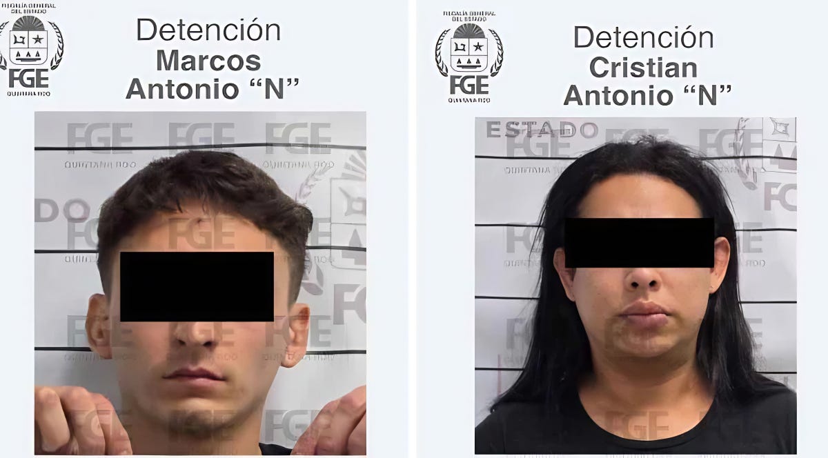 Playa del Carmen.— Dos presuntos extorsionadores, entre ellos un ciudadano argentino, fueron detenidos en las últimas horas tras las investigaciones por el incendio de dos vehículos ocurrido a inicios de enero en esta ciudad. Los detenidos responden a los nombres de Cristian Antonio “N” y Marcos “N”, este último de nacionalidad argentina. La captura se llevó a cabo cuando ambos circulaban por la Primera Avenida Norte, esquina con calle 15, en la colonia Centro, gracias a labores de inteligencia y seguimiento coordinadas entre autoridades estatales y municipales.