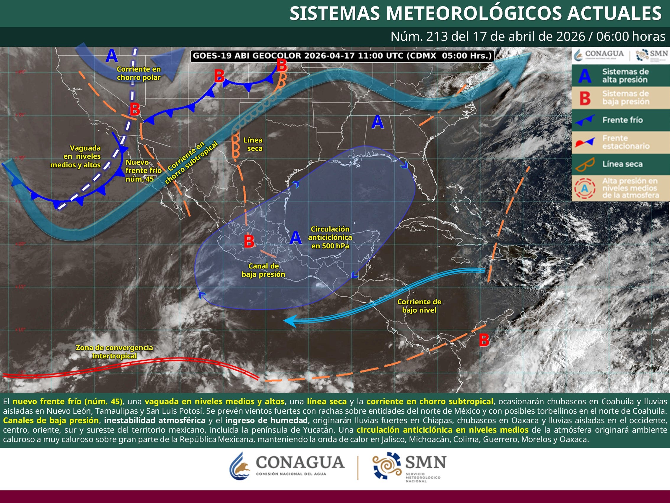 Por el momento, el frente frío número 45 se acerca al noroeste del país, pero su influencia en la península de Yucatán es mínima; aquí seguimos con el patrón típico de pre-temporada de lluvias: calor y brisa marina.