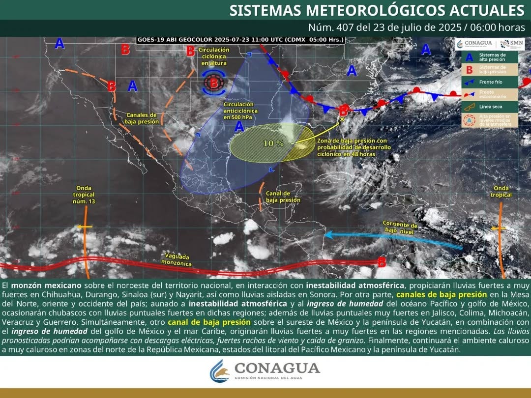 Chetumal.- Quintana Roo enfrenta un día de calor intenso este miércoles 23 de julio, con cielos que evolucionarán de parcialmente nublados a nublados, acompañados de chubascos y lluvias puntuales fuertes en varias zonas del estado. La combinación de un canal de baja presión sobre la Península de Yucatán y la afluencia de aire marítimo con alta humedad desde el Caribe marcará el ritmo del clima, según el Servicio Meteorológico Nacional y la Coordinación Estatal de Protección Civil. Aquí te contamos cómo se comportará el tiempo en cada municipio, junto con recomendaciones para disfrutar o protegerte del día.