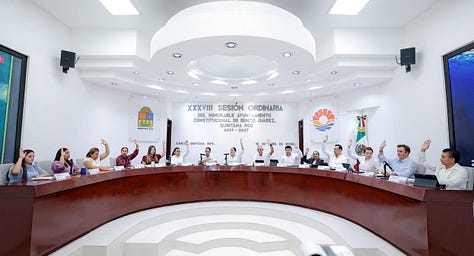 Cancún.- En el marco de la Trigésima Octava Sesión Ordinaria, encabezada por la Presidenta Municipal, Ana Paty Peralta, el Cabildo de Benito Juárez aprobó de forma unánime la asunción de atribuciones en materia de transporte público, a través del Instituto de Movilidad del Estado (IMOVEQROO), para avanzar hacia un nuevo modelo más ordenado, digno, justo y acorde a las necesidades actuales de la ciudad, atendiendo un problema que por años había sido olvidado.