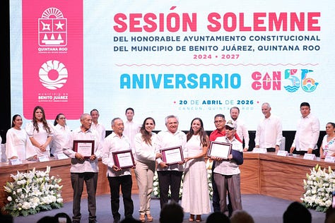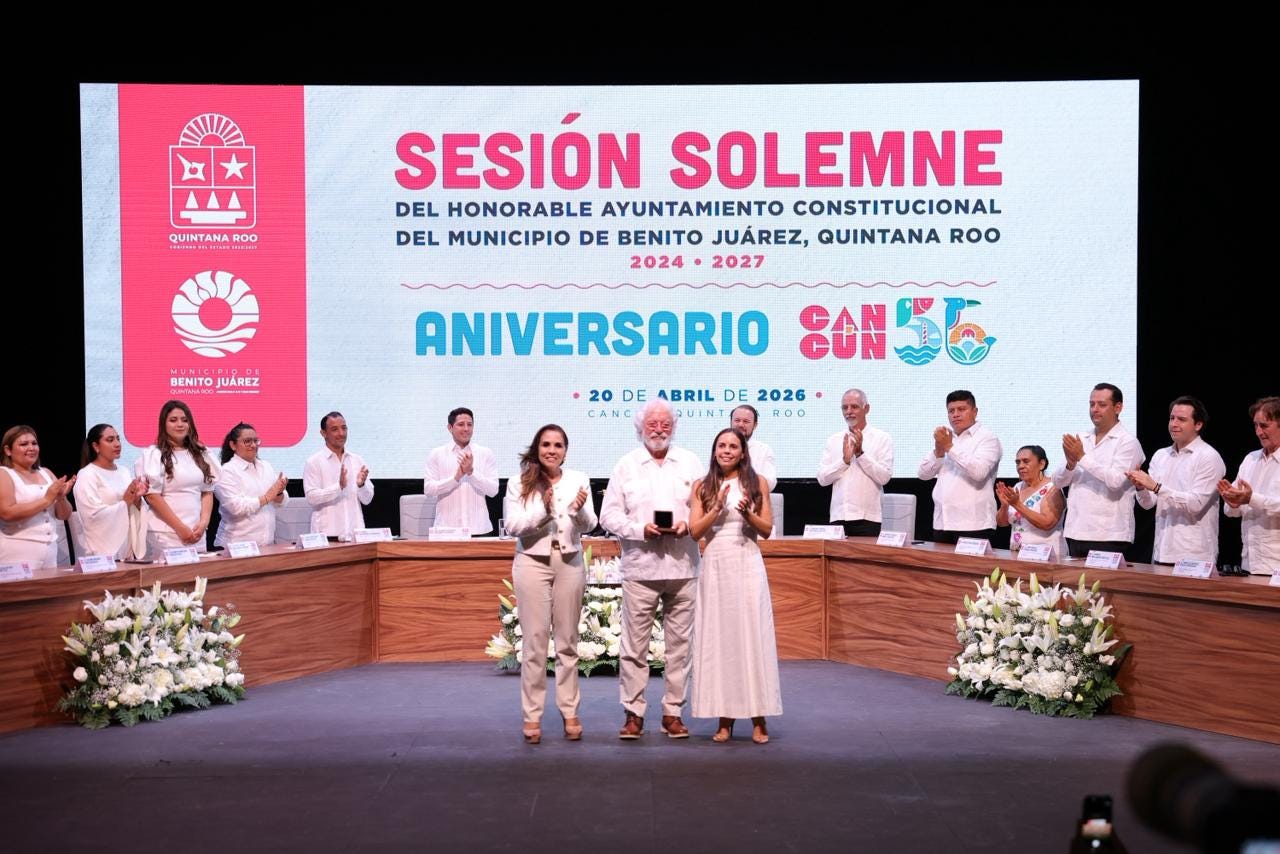 Al encabezar con la gobernadora Mara Lezama, la Cuarta Sesión Solemne del Ayuntamiento de Benito Juárez 2024-2027 en el Teatro de la Ciudad, tras la lectura del Consejo de Premiación, entregó la Medalla al Mérito Ciudadano “Sigfrido Paz Paredes 2026” al arquitecto, empresario y filántropo Carlos Constandse Madrazo, actual presidente de la Cruz Roja Mexicana en Quintana Roo, integrante de la Confederación Patronal de la República Mexicana (COPARMEX) Quintana Roo y cofundador de Grupo Xcaret, por su destacada contribución al desarrollo económico, turístico, así como en materia de labor social y humanística en la localidad.