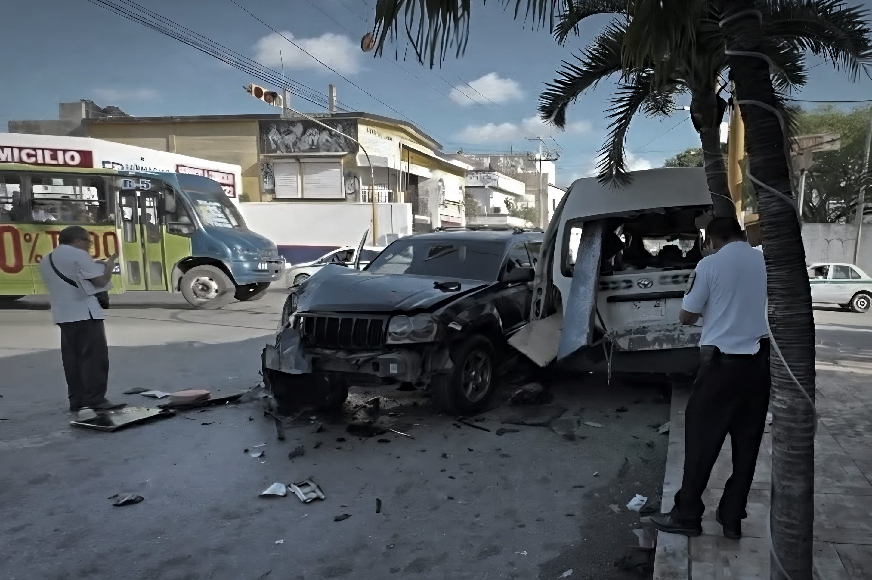 Cancún.— La mañana de este domingo, la línea de emergencias se activó tras el reporte de un fuerte accidente en el cruce de la avenida Miguel Hidalgo (Ruta 5) con la avenida Lombardo Toledano, en la Región 92. El percance involucró a tres vehículos: una van blanca de la empresa The One, una camioneta negra y una van de transporte público TTE de la Ruta 5, dejando un saldo de al menos ocho personas lesionadas, todas pasajeras de la combi.