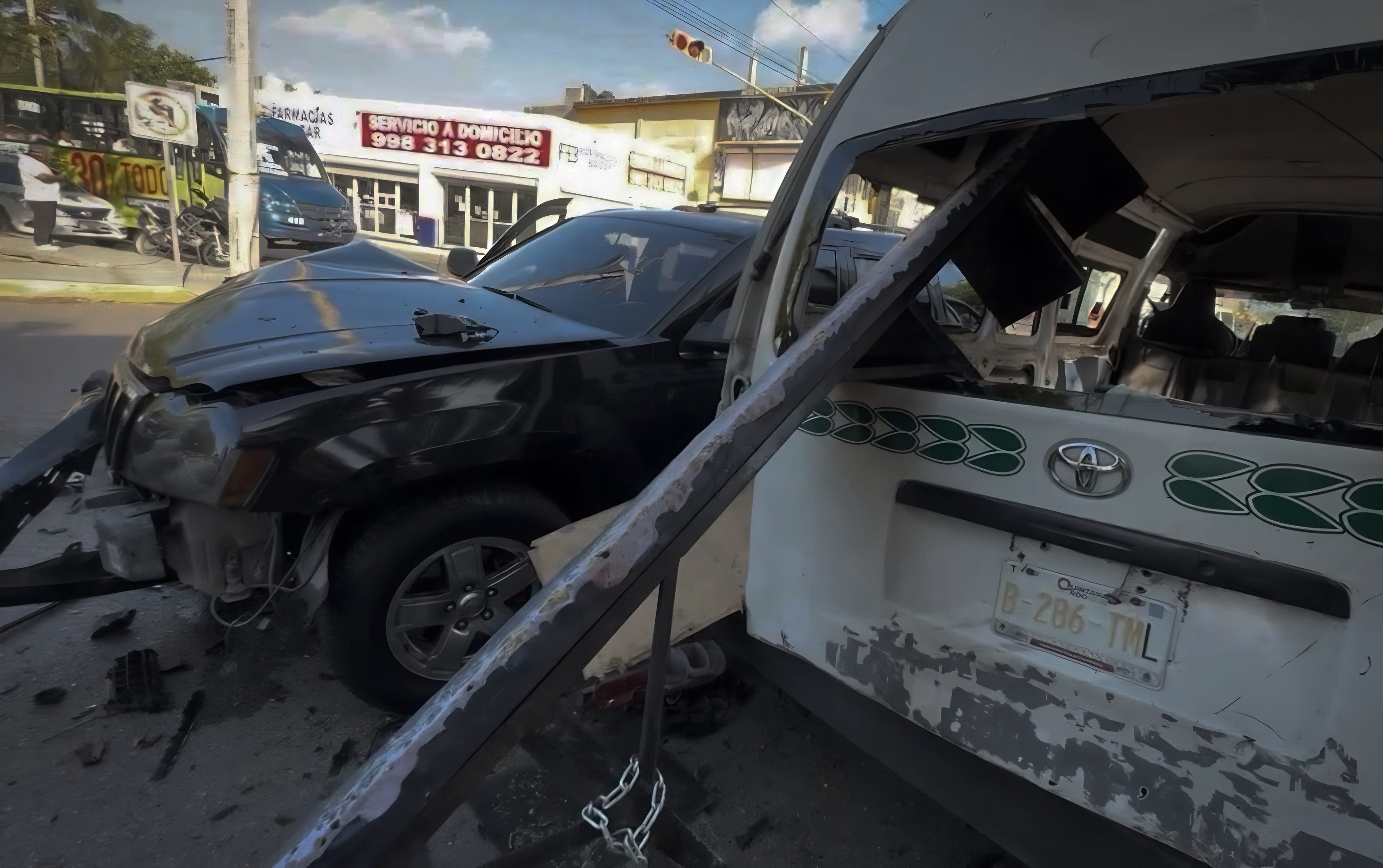 Carambola deja ocho pasajeros heridos en Cancún, iban a bordo de una combi de TTE