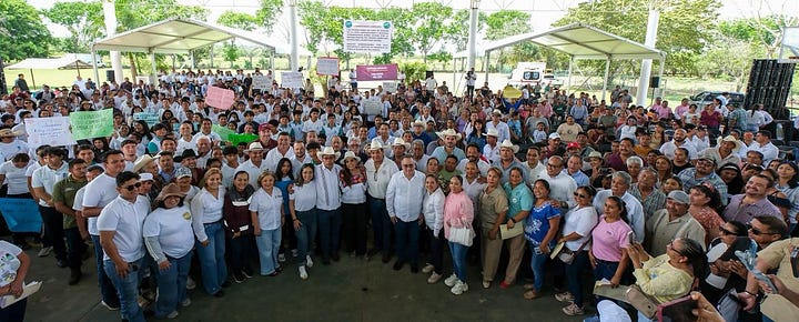 Luego de escuchar las palabras de agradecimiento de los líderes cañeros, Benjamín Gutiérrez Reyes y Sergio Crisanto Mortero, la gobernadora Mara Lezama informó que por primera vez este gobierno humanista con corazón feminista está metido en el campo, entregando equipos, maquinaria. Anunció que se construirán 75 kilómetros de caminos sacacosechas.