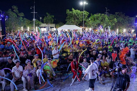Cancún.– “Cancún es alegría, ritmo, color, identidad y orgullo, y eso se siente en cada una de las actividades que tendremos desde hoy y hasta el martes 17 en el Parque de las Palapas, Avenida Tulum, Malecón Tajamar y estadio Beto Ávila”, expresó la Presidenta Municipal, Ana Paty Peralta, al coronar a todas las y los soberanos del Carnaval Cancún 2026 de seis categorías.
