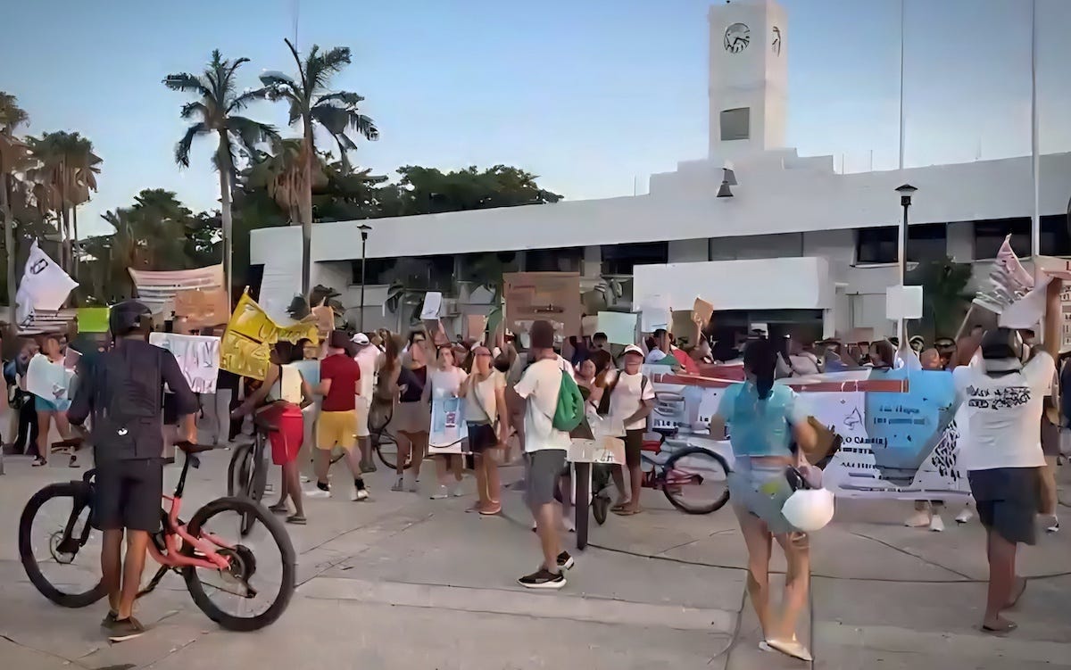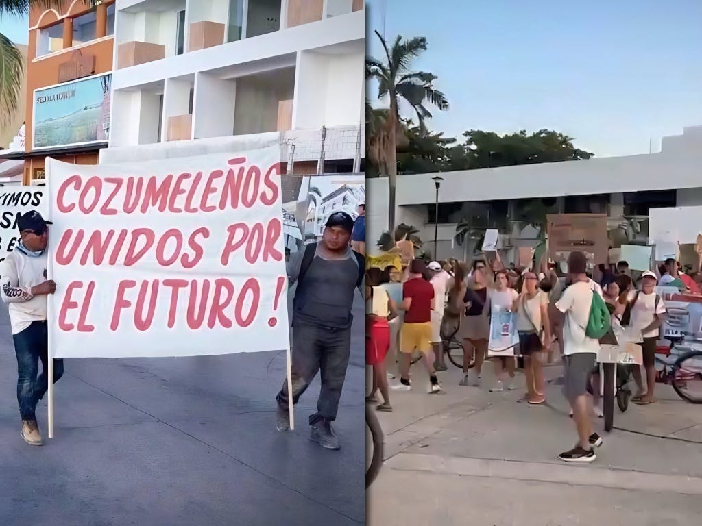 En contraste, la protesta en contra no careció de relevancia. Los opositores argumentan que el muelle pone en peligro una zona arrecifal de alto valor ecológico y uno de los pocos espacios recreativos accesibles para los cozumeleños. Cuestionan si vale la pena dañar el ecosistema por cruceros más grandes, cuando los muelles actuales no están al límite de su capacidad.