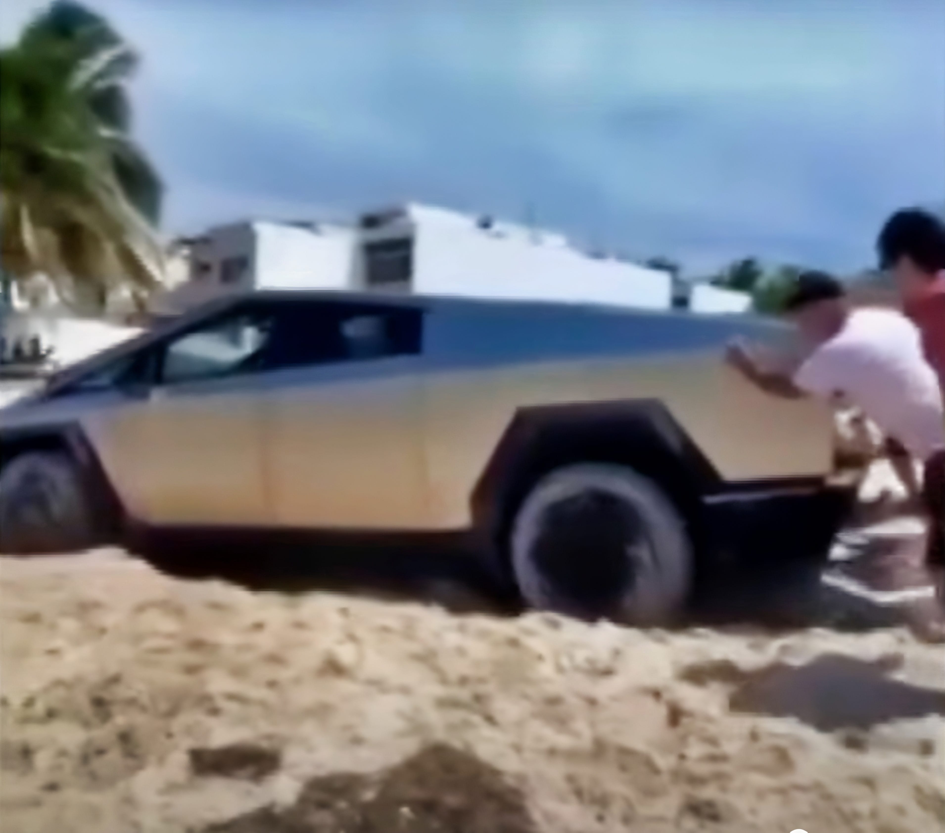 Según reportes de testigos y videos compartidos en plataformas, el conductor del Cybertruck decidió circular por la arena de la playa “Esmeralda” de San Benito, a pocos metros de la orilla del mar. A pesar de su diseño angular y su promesa de ser un todoterreno revolucionario, el vehículo eléctrico se hundió rápidamente en la arena blanda, incapaz de avanzar. La escena, captada en clips que circularon ampliamente, muestra a varias personas, incluyendo un elemento de la Secretaría de Seguridad Pública (SSP) de Yucatán armado con una pala, colaborando para liberar el auto. Tras varias horas de empujones y excavaciones, el Cybertruck fue finalmente rescatado, pero no sin dejar una marca en la opinión pública.