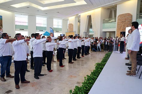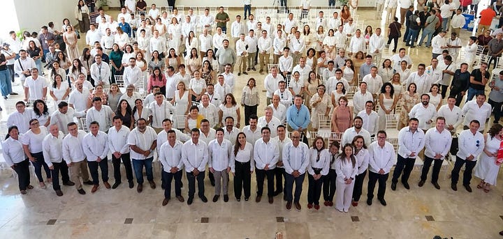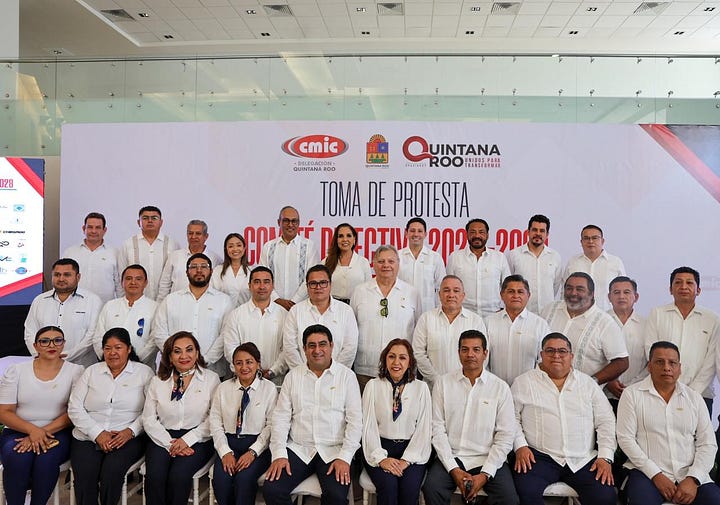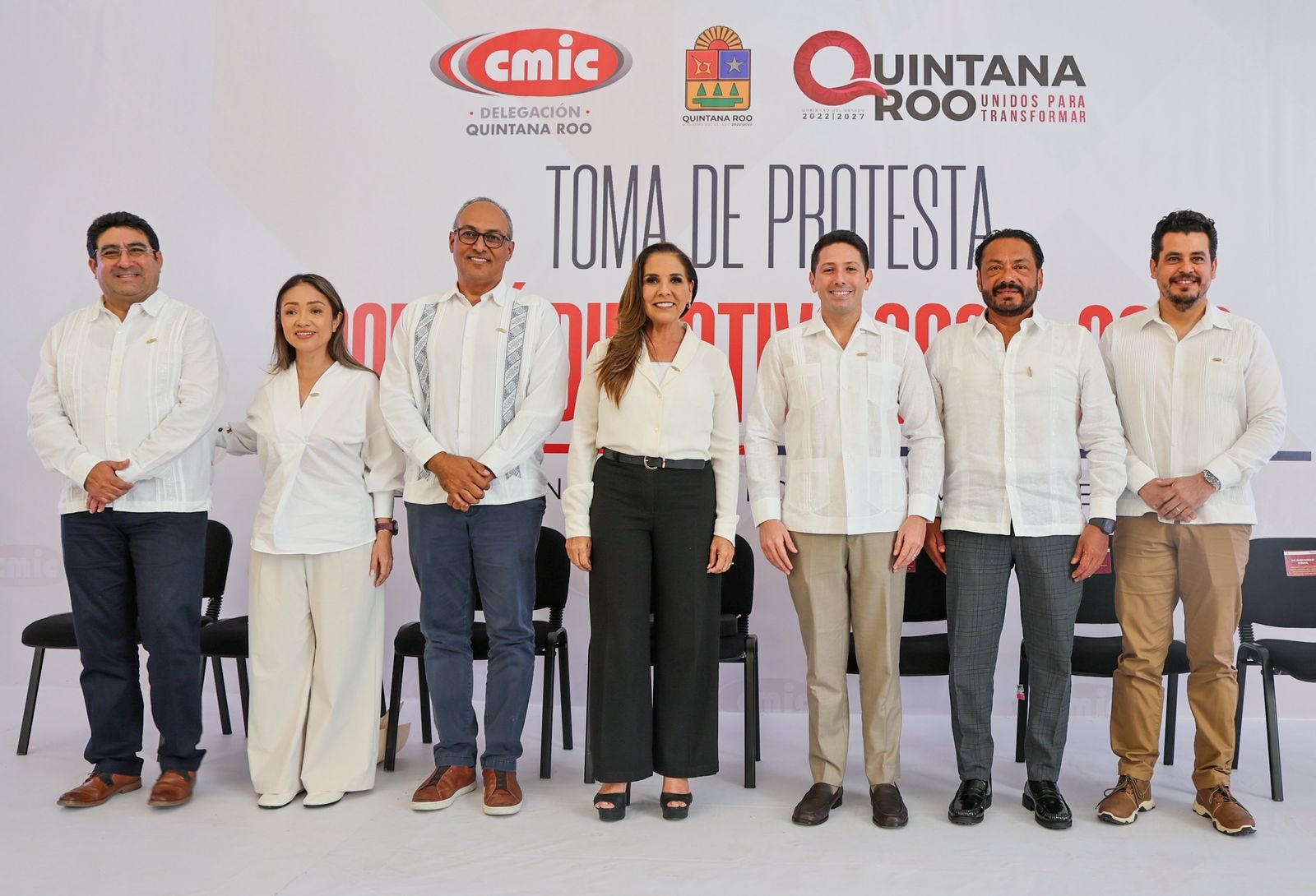 Junto con el vicepresidente Ejecutivo de Desarrollo Empresarial en Infraestructura Privada de la CMIC, Quel Galván Pelayo, la gobernadora Mara Lezama atestiguó la toma de protesta de Manuel Jesús Moguel Manzur, presidente entrante, quien releva en el cargo a Ulises Morales Estrada.