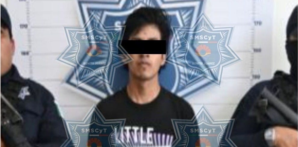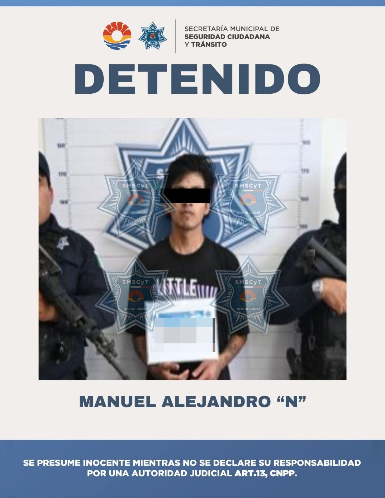 En la Supermanzana 223, Manuel Alejandro “N”, de 22 años, fue arrestado tras ingresar con otro individuo a una casa, disparar y exigir dinero.