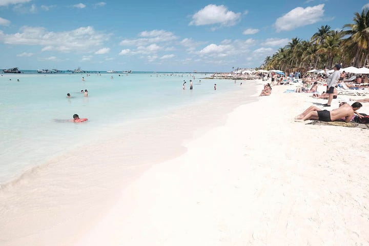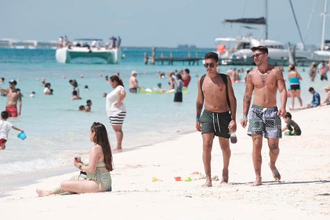Así lucen las playas de Isla Mujeres este fin de semana. El calor regresó al Caribe Mexicano y los turistas aprovechan el buen clima para disfrutar del mar.