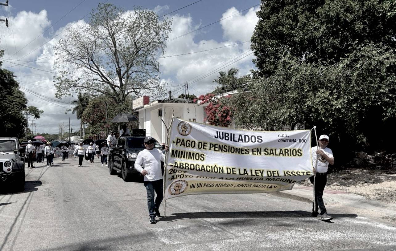 Chetumal.— En el marco del Día del Maestro, maestros inconformes en Chetumal y Felipe Carrillo Puerto realizaron marchas para exigir la abrogación de la Ley del ISSSTE de 2007, que consideran atenta contra sus derechos laborales y jubilatorios. Con pancartas y consignas, demandaron una jubilación digna, criticando que la ley actual les obliga a retirarse a los 65 años, en contraste con el esquema previo que permitía a mujeres jubilarse tras 28 años de servicio y a hombres tras 30.