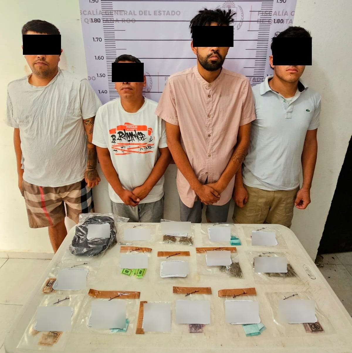 El caso más destacado tuvo lugar en la vía que conecta Tulum con Felipe Carrillo Puerto, una zona conocida por ser corredor de trasiego de estupefacientes. Allí, las autoridades detuvieron a Luis Alberto “N” (“El Chaparro”), Luis Antonio “N” (“El Manitas”), Jorge Alberto “N” (“Rasta”) y Rubén Antonio “N” (“El Venezolano”). Durante el operativo, se incautaron diversas sustancias ilícitas, además de una cuatrimoto y dos motocicletas, presuntamente utilizadas para el transporte y distribución de drogas. Los cuatro fueron vinculados a proceso por delitos contra la salud en la modalidad de narcomenudeo, y los jueces ordenaron prisión preventiva justificada, argumentando el riesgo que representan para la sociedad.