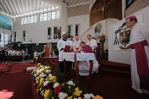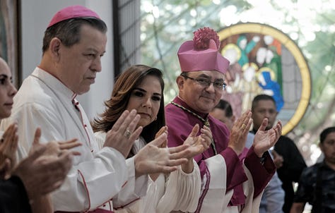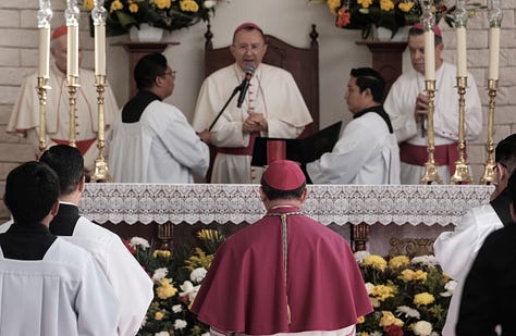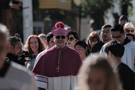 Cancún.— Este es el nuevo obispo de la Prelatura Cancún-Chetumal, Mons. Salvador González Morales, durante una procesión que partió de la Iglesia de la Sagrada Familia —donde tuvo un evento de recepción, acompañado de la gobernadora Mara Lezama y de la presidenta municipal de Benito Juárez, Ana Paty Peralta—, a la Catedral de Cancún, donde tomó protesta, ante el Arzobispo Primado de México, Mons. Carlos Aguilar Retes, y el Nuncio Apostólico de México, Mons. Joseph Spiteri, en una ceremonia a la que asistió la grey católica.