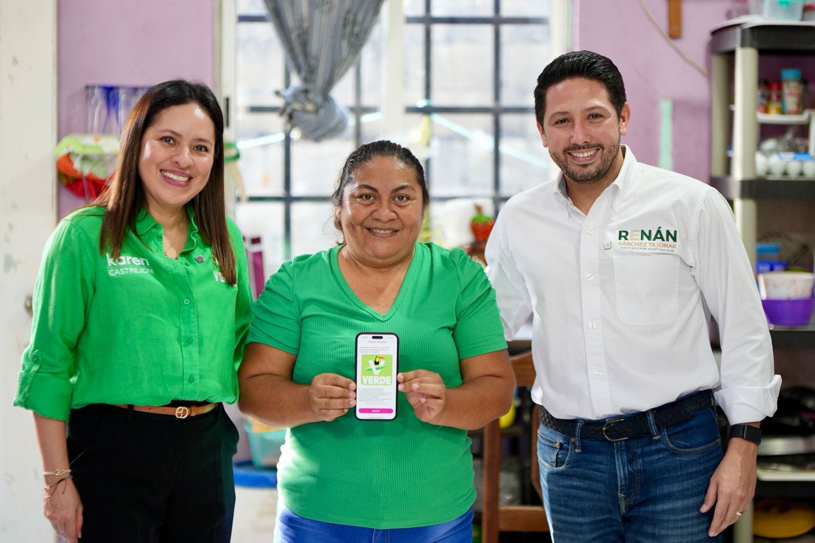 Cancún.- En un ambiente de cercanía con la militancia de base, el dirigente estatal del Partido Verde en Quintana Roo, Renán Sánchez Tajonar, acompañado de la dirigente nacional del Verde, Karen Castrejón Trujillo, visitaron a Maricruz Martín Moreno, quien por más de nueve años ha formado parte de la familia Verde en el municipio de Benito Juárez.