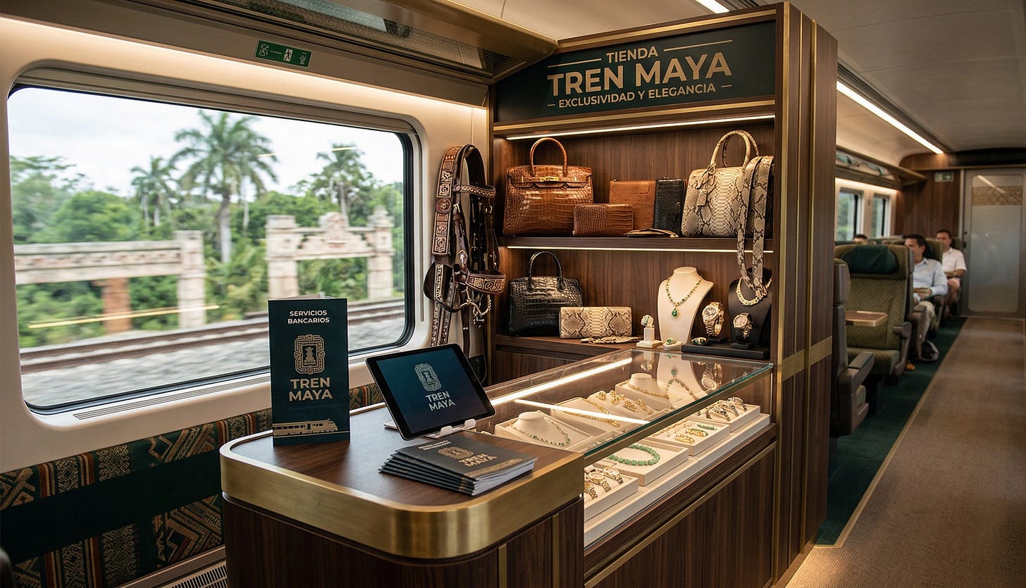 El Tren Maya busca expandirse al mercado de lujo: Pieles de animales, joyería y banca