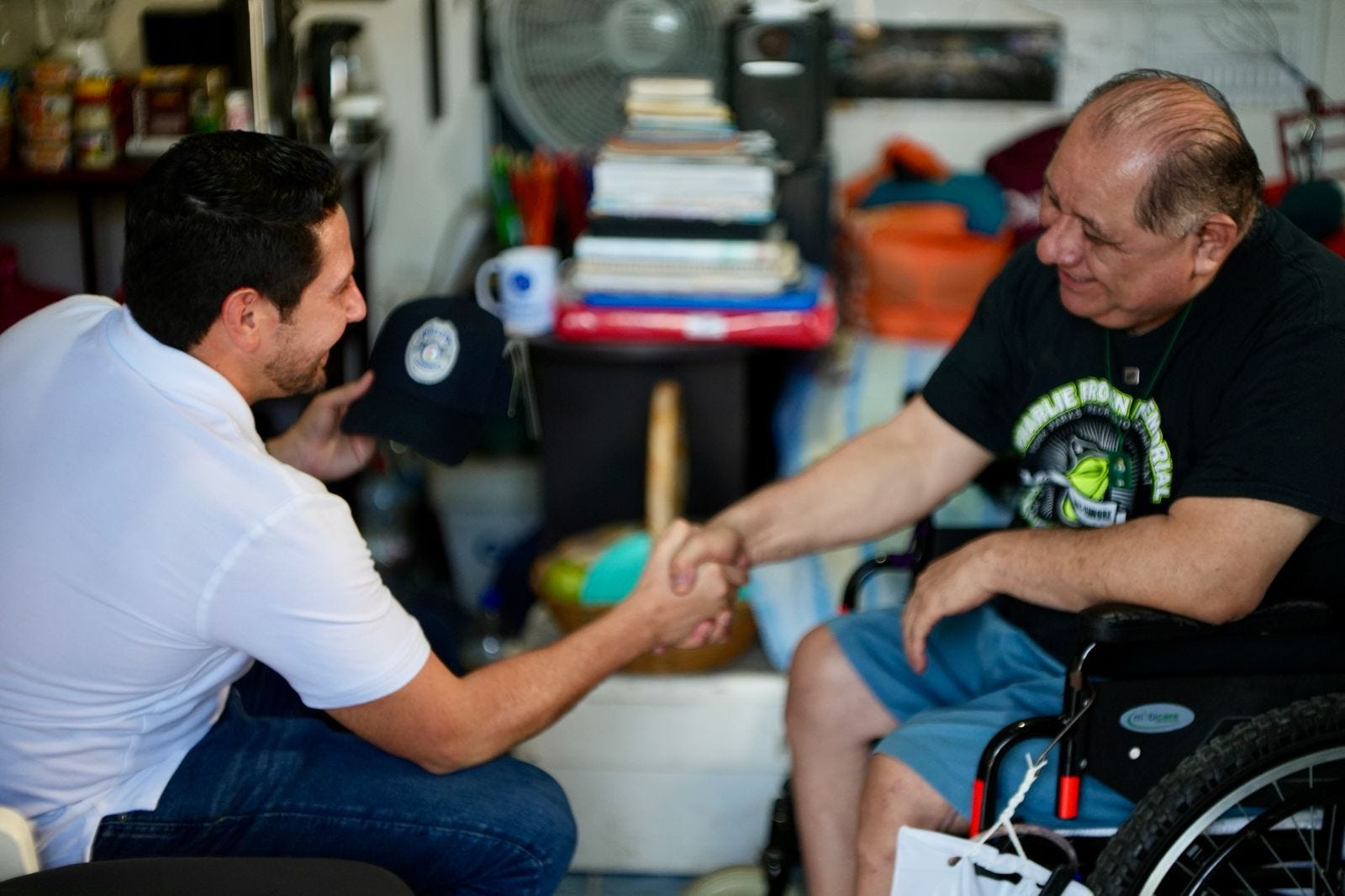 Durante su visita más reciente a Puerto Morelos, Renán Sánchez Tajonar se reunió con Pedro Góngora, simpatizante del Verde, a quien reconoció por su resiliencia ante momentos difíciles de salud y destacó la aprobación de programas sociales que han significado un verdadero alivio en su día a día.