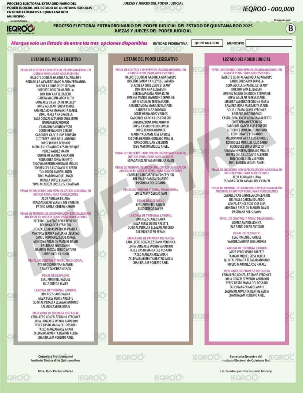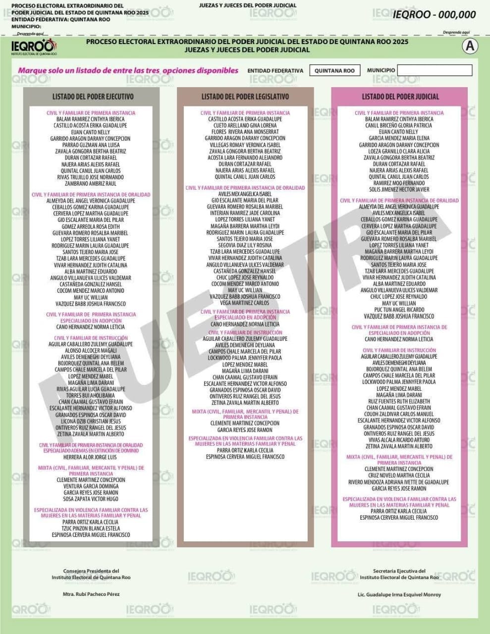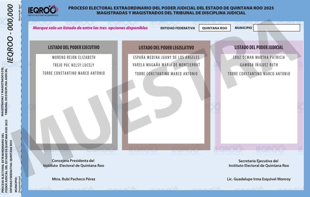 Todo comenzó el 1 de abril de 2025, cuando el Consejo General del Ieqroo aprobó el diseño original de las boletas para los comicios judiciales. En ellas se enlistaban 91 candidatos propuestos por el Poder Legislativo, 107 por el Judicial y 117 por el Ejecutivo, permitiendo a los votantes seleccionar individualmente a sus preferidos. Sin embargo, esta estructura no duró mucho. Carlos Felipe Fuentes del Río, consejero jurídico del Gobierno del Estado, presentó un Recurso de Apelación (RAP/009/2025), argumentando que el diseño generaría confusión entre los electores. El pasado jueves, el Pleno del Teqroo, con el aval de Avilés Demeneghi, dio la razón a Fuentes del Río y ordenó un cambio radical en las boletas.