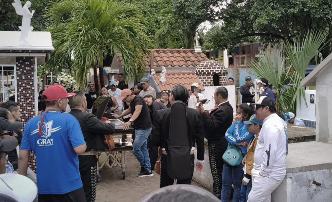 Playa del Carmen.— Familiares, amigos e integrantes de la comunidad marítima y pesquera despidieron a Pablo Cruz —quien murió bajo custodia policial— en el cementerio municipal de la colonia Luis Donaldo Colosio, en un emotivo adiós acompañado por música de mariachi y fuertes reclamos de justicia.