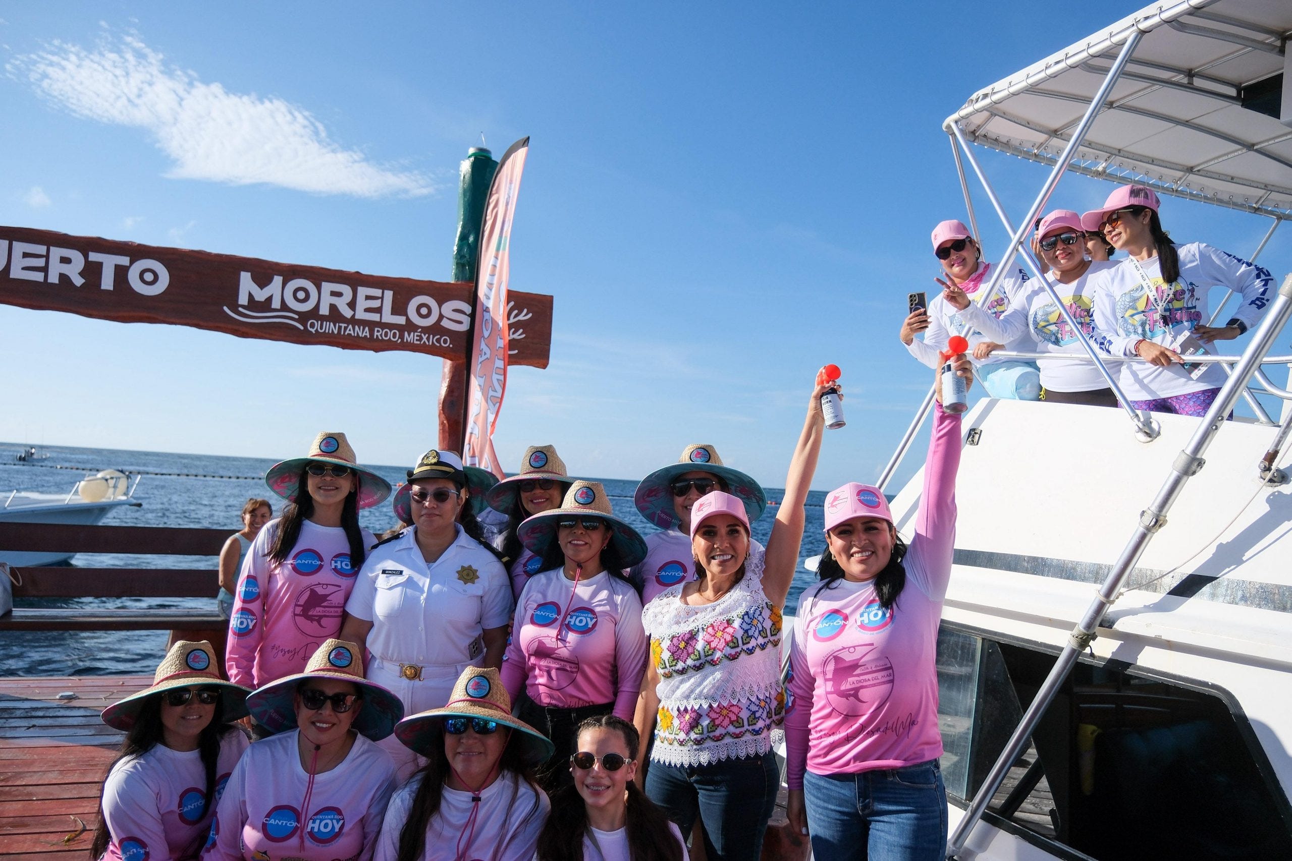 Puerto Morelos.- Con la participación de 32 embarcaciones y más de 250 mujeres, la gobernadora Mara Lezama Espinosa dio el pitazo de salida para participar en el Torneo Internacional de Pesca Deportiva Femenil “La Diosa del Mar”.