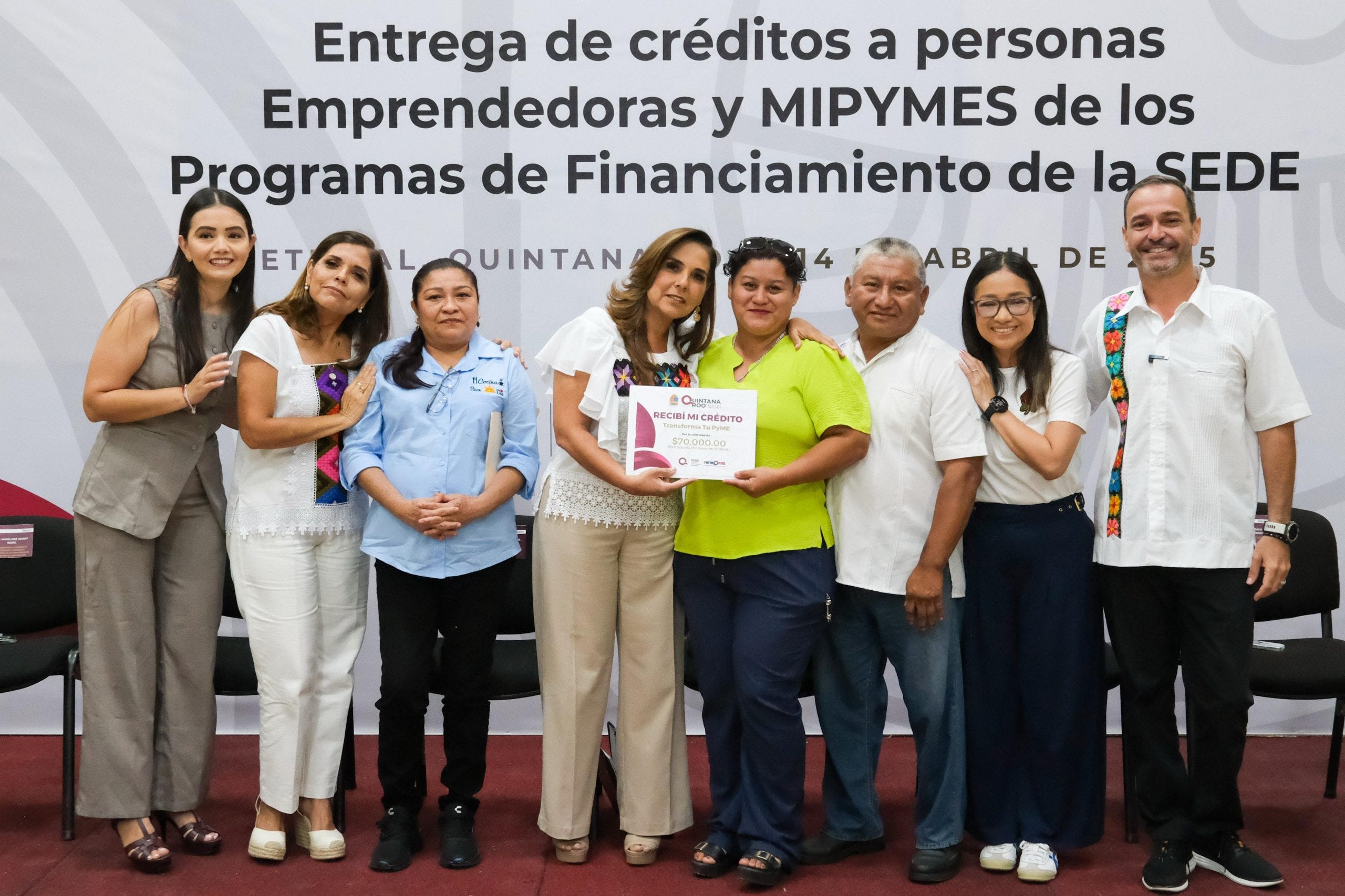 La gobernadora Mara Lezama expresó su satisfacción al entregar estos financiamientos, porque “detrás de cada negocio hay una historia de lucha, de escuchar muchas veces el “no lo vas a lograr”. Cada persona que hoy recibe un crédito es una prueba de que en Quintana Roo sí se puede”, afirmó.