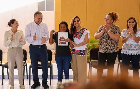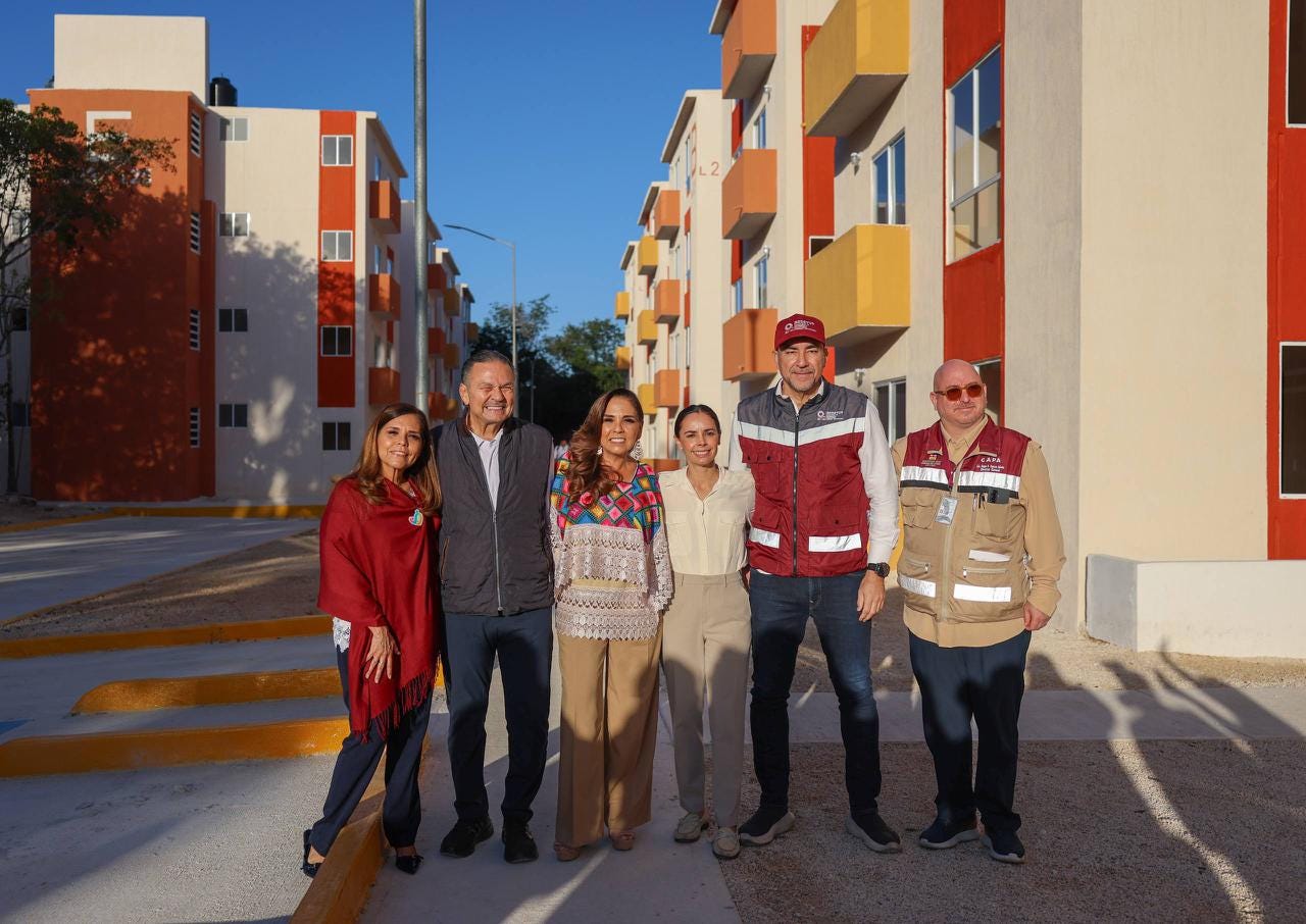 “Todo nuestro reconocimiento a la Presidenta por impulsar la política de vivienda más importante de la historia de nuestro país y tiene un profundo sentido social. Hoy Cancún es la ciudad con más viviendas entregadas en todo el país, gracias a la gestión permanente de nuestra Gobernadora, Quintana Roo es el estado número uno en colocación de casas a nivel nacional”, dijo.