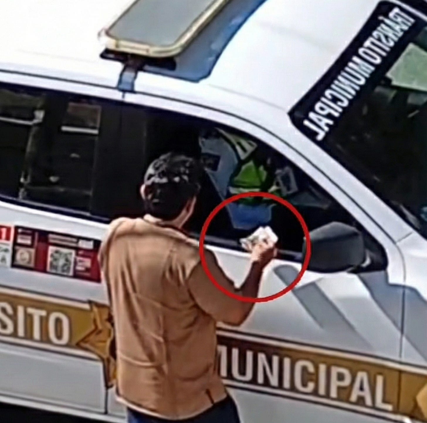 El ángulo de la grabación permite ver con nitidez tanto la entrega del dinero como los distintivos de la unidad oficial, detalles que ya están siendo analizados por usuarios en redes para identificar plenamente al elemento involucrado.