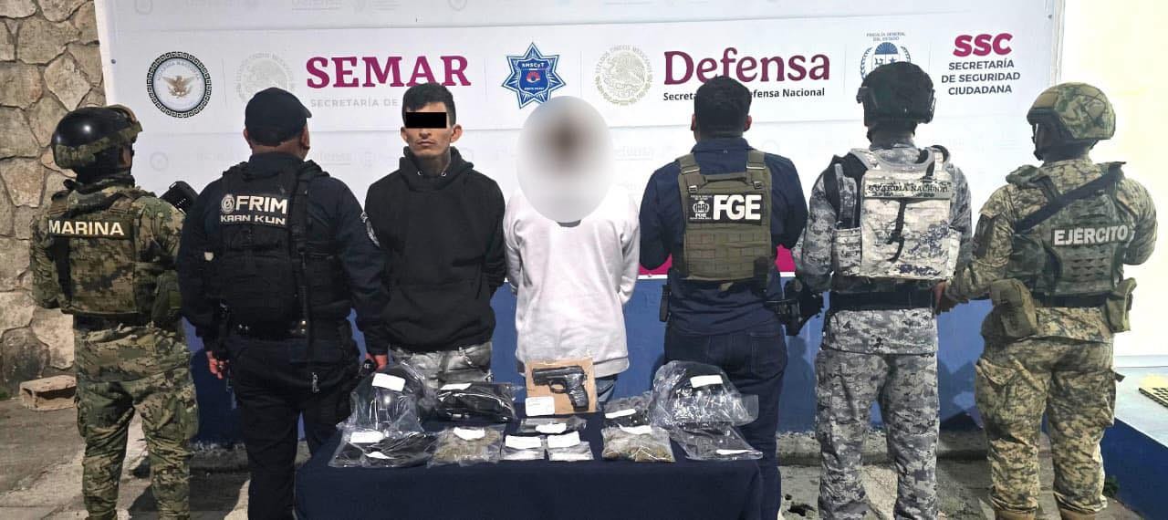 Cancún.— La Fiscalía General del Estado informó la captura de los dos ladrones que asaltaron a dos turistas extranjeras el pasado 14 de abril en la Supermanzana 27 de Cancún. Se trata de Carlos “N”, alias “Flaco”, y un adolescente, quienes fueron detenidos en el fraccionamiento Bahía Real, en la zona de Arco Norte, en un operativo coordinado entre la Fiscalía General del Estado, la Secretaría de la Defensa Nacional, la Marina, la Guardia Nacional y la Policía Municipal.
