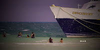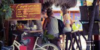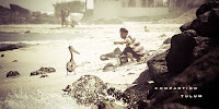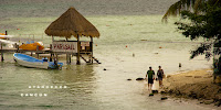 Dos vendedores ambulantes intercambian saludos en una playa de Puerto Morelos, la comunidad que destaca por su ascendente potencial turístico y que se ubica a tan sólo 18 kilómetros de Cancún.
