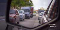 Cientos de automovilistas avanzan a vuelta de rueda en la Zona Hotelera de Cancún, mientras autoridades realizan obras de repavimentación en esa vía; el bulevar Kukulán es la rúa que lleva al área de playas, el principal atractivo de la ciudad, aunque ésta se ve seriamente trastornada cuando hay que hacer reparaciones, cosa que regularmente se hace por las madrugadas, salvo en el caso de la rehabilitación de la carpeta asfáltica, actividad que debe ser realizada forzosamente durante el día, cuando el sol es intenso, una hora que es a su vez de tráfico alto en ese lugar.