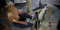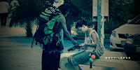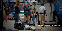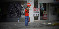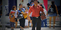 Un hombre está vendiendo chicles en el parque de Las Palapas, en Cancún; es uno de los personajes urbanos de la ciudad, quien se diga cancunense lo habría visto alguna vez ofertando sus productos por las calles del centro, siempre portando un antiguo casco petrolero con la leyenda “Poza Rica” –se supone-, su lugar de procedencia, aunque no se sabe mucho más de él.